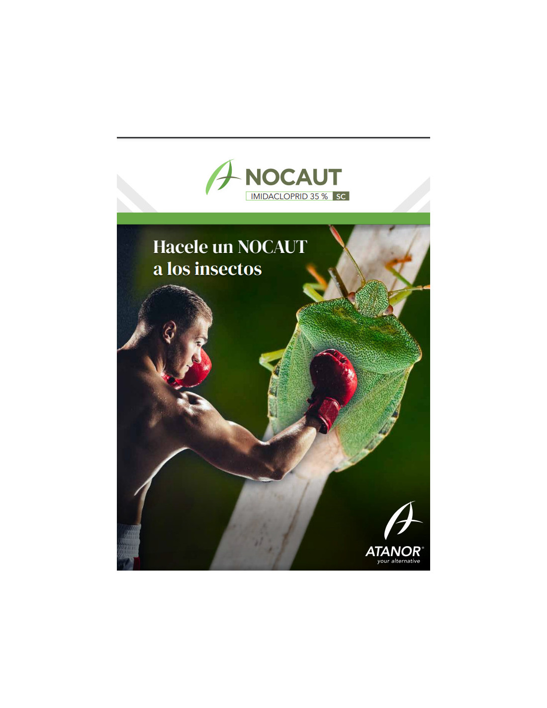 NOCAUT SC es un insecticida formulado a base de imidacloprid, un neonicotinoide que actúa como antagonista del receptor nicotínico de la acetilcolina, afectando de este modo el sistema nervioso central de los insectos. NOCAUT SC posee acción sistémica con movimiento acrópeto en la planta, actuando por ingestión y contacto sobre el insecto. Posee un amplio espectro de acción y prolongado período de protección en diversos cultivos.